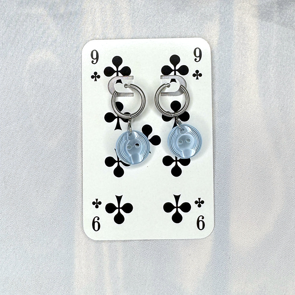 Ein paar pastellige kleine Knöpfe mit Meeresfeeling. Besonders zusammen mit der Muschel an der Aufhängung kommt direkt eine leichte Brise auf.