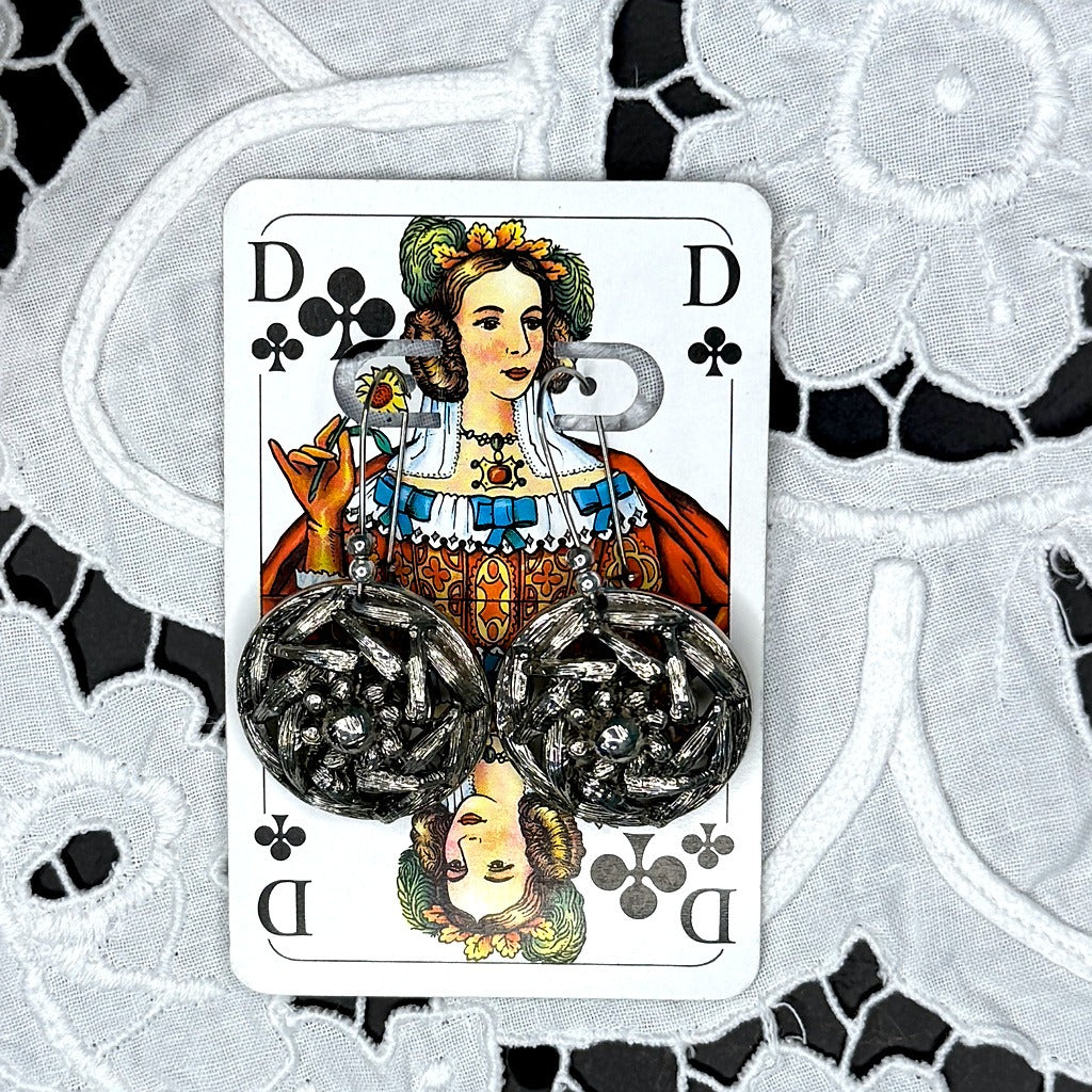 Dieses Paar bestand ursprünglich aus Ösenknöpfen. Auf der Rückseite wurde die Öse entfernt und durch einen flachen Knopf ersetzt, damit sich die Stücke angenehmer tragen lassen.