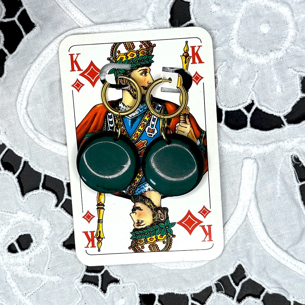 Vintage Knopfohrringe: Tannengrün